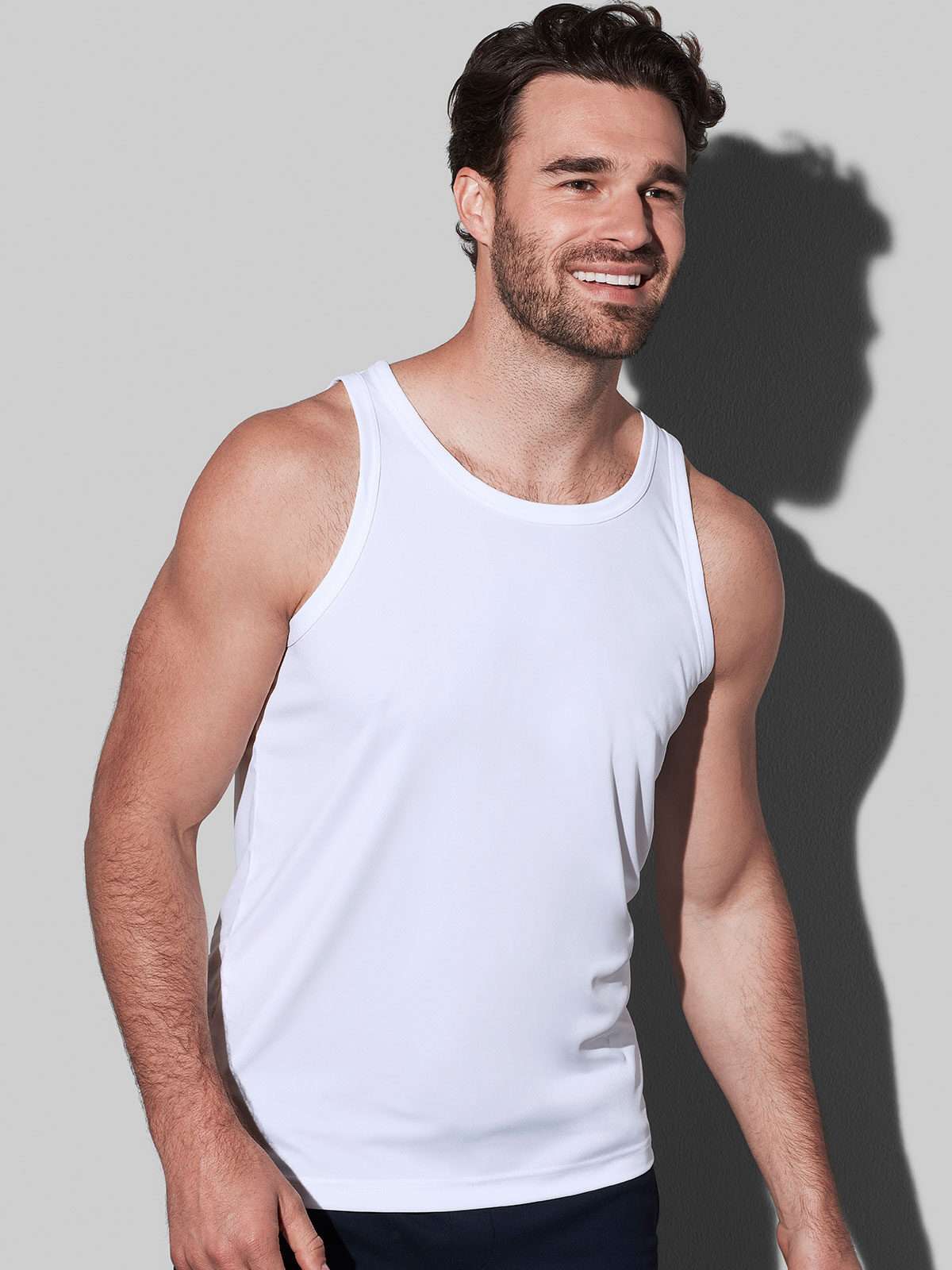 100% poliestere Active-DRY°. Canotta con girocollo e giromanica bordati, logo catarifrangente sul retro del collo, struttura con cuciture laterali, etichetta strappabile, traspirante e ad asciugatura rapida.
