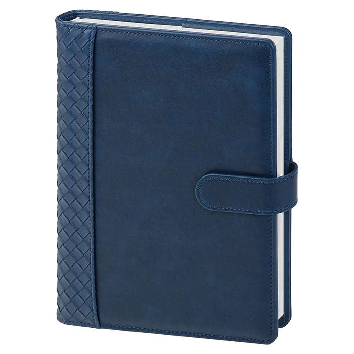 chiusura con magnete; interno giornaliero intercambiabile carta bianca; sab e dom. separati- 404 pag; dorso intrecciato; portapenna; corredata di astuccio; inserto cartografico; segnapagine; rubrica telefonica; edizione multilingua