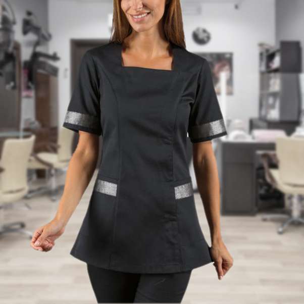 100% poliestere. Tunica da donna con chiusura posteriore a zip nascosta, scollo rotondo con taglio a V, spacchetti laterali, tasche aperte ai lati.