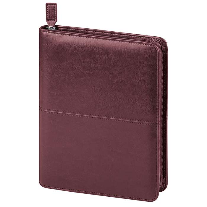 varie tasche interne e porta carte di credito; interno giornaliero intercambiabile taglio naturale; carta bianca - sab e dom. separati - 400 pag; corredata di astuccio e penna
