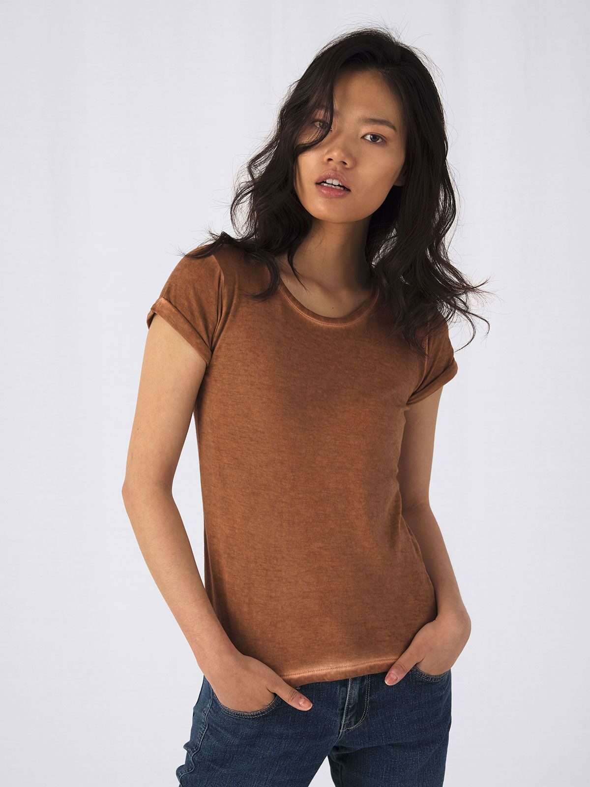 100% cotone single jersey, ring-spun. T-shirt manica corta set-in, girocollo. Trattamento con tintura a freddo per un effetto vintage. Struttura con cuciture laterali, leggermente sfiancata, giromanica con orlo arrotolato. Lavare prima di indossare.