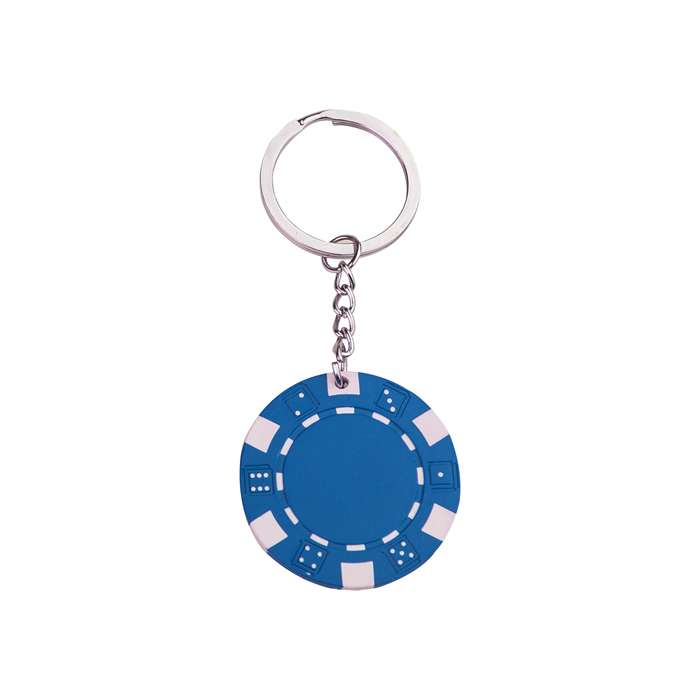 portachiavi in plastica extrapesante; a forma di fiches; anello piatto in metallo cromato; tecnica di stampa consigliata: serigrafica - tampografica - UV