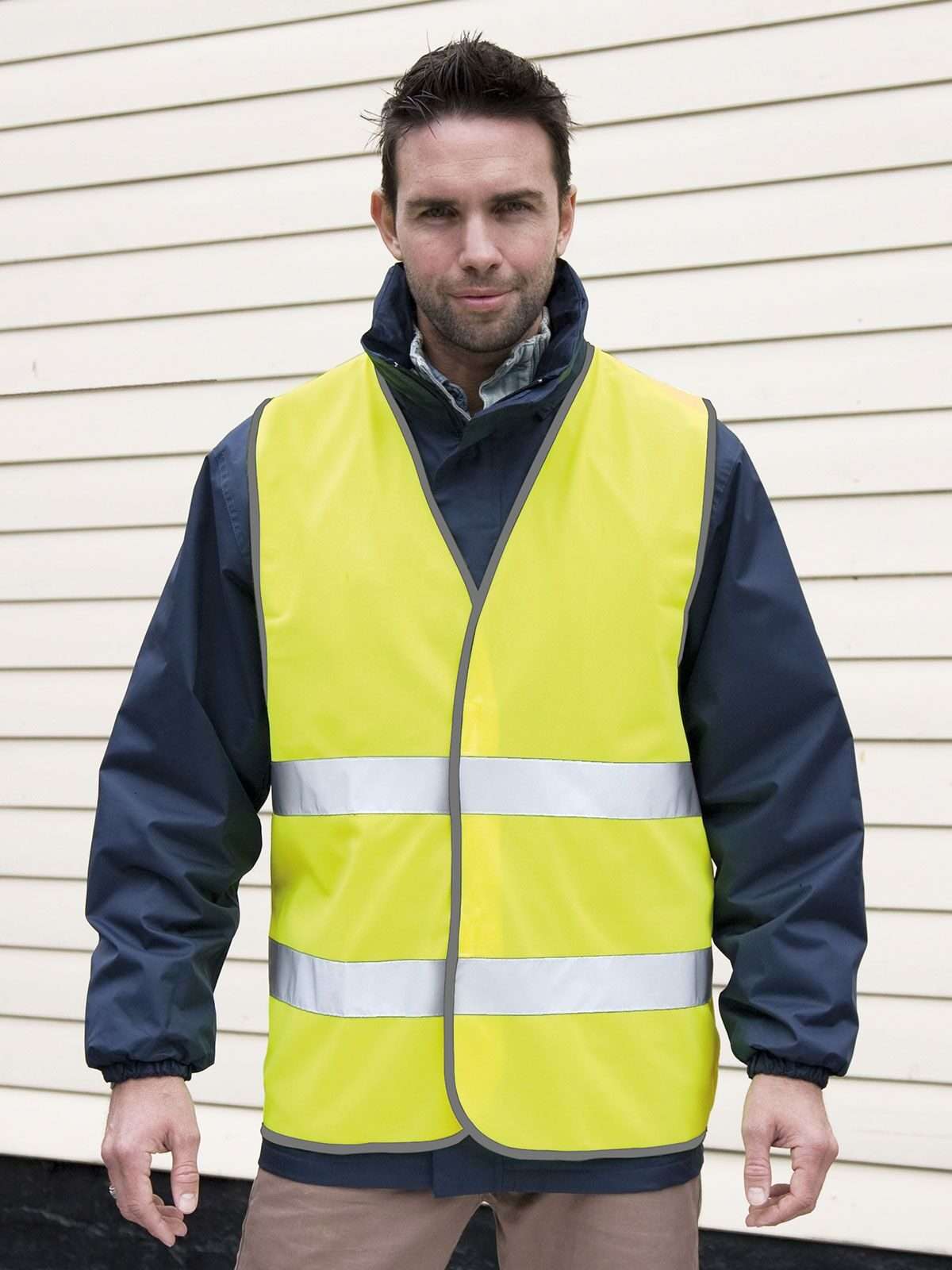 100% poliestere. Gilet ad alta vestibilità. Bordi del capo in poliestere grigio. Fasce riflettenti larghe 5 cm. Da indossare attillato per la massima efficienza. Adatto alla stampa per transfert, stampa diretta o ricamo. EN ISO 20471:2013, class 2, conforme a direttiva 89/686/EEC