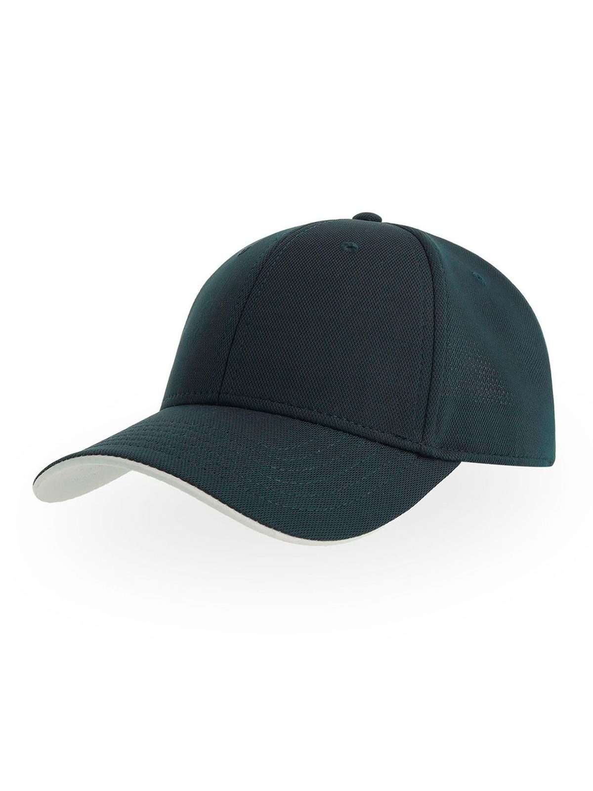 100% poliestere. Cappellino a 6 pannelli, sottovisiera a contrasto, occhielli ricamati, pannello frontale rinforzato, visiera pre-curvata, chiusura in velcro, parasudore: 35% cotone - 65% poliestere. Etichetta removibile.