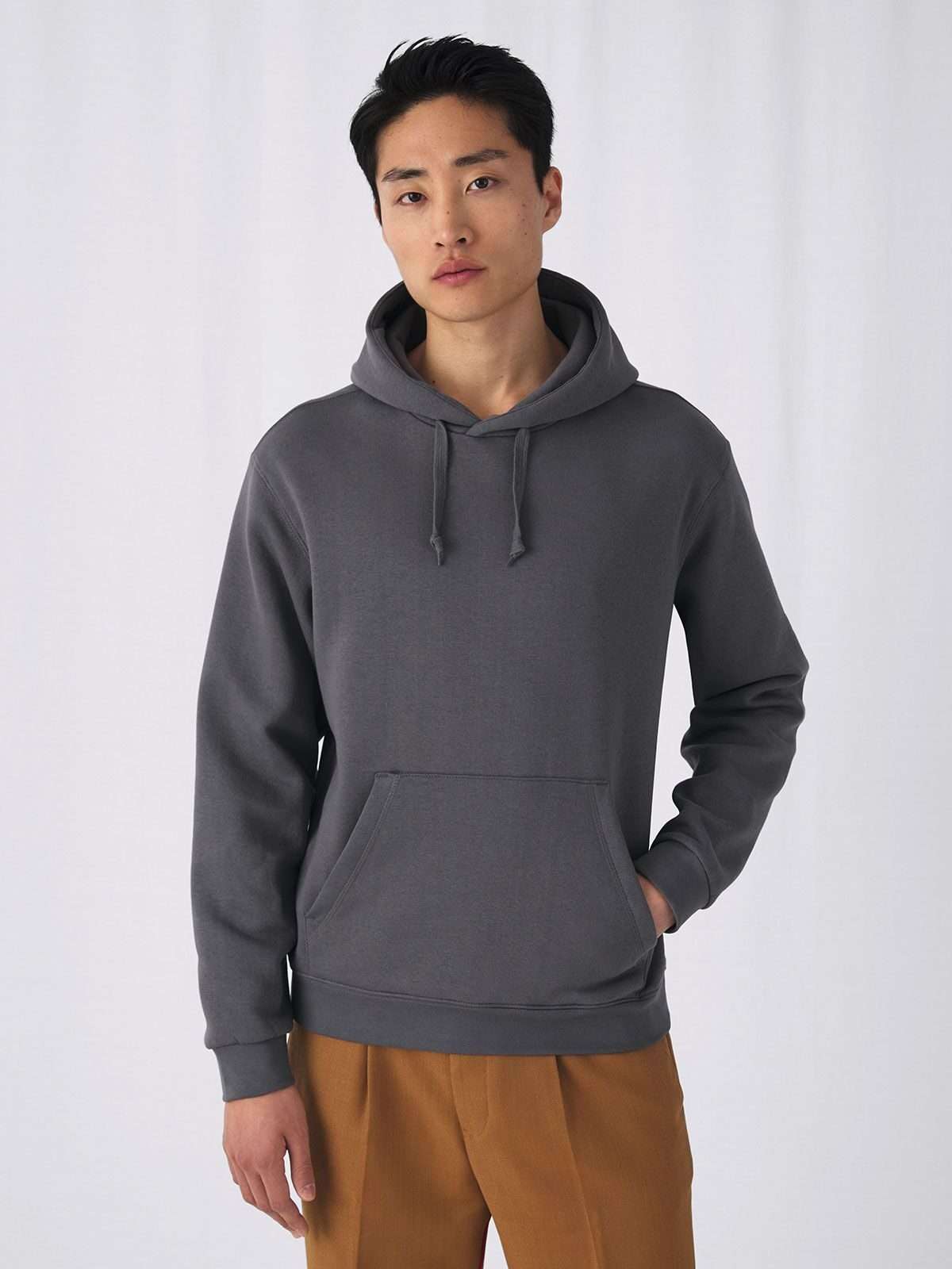 80% cotone, 20% poliestere. Tessuto PST: interno in poliestere e esterno in 100% cotone. Felpa con cappuccio foderato con cordino e occhiello in metallo. Polsino e orlo inferiore in costina 1x1 elastan, tasca a marsupio, maniche set-in, felpata internamente, struttura con cuciture laterali.