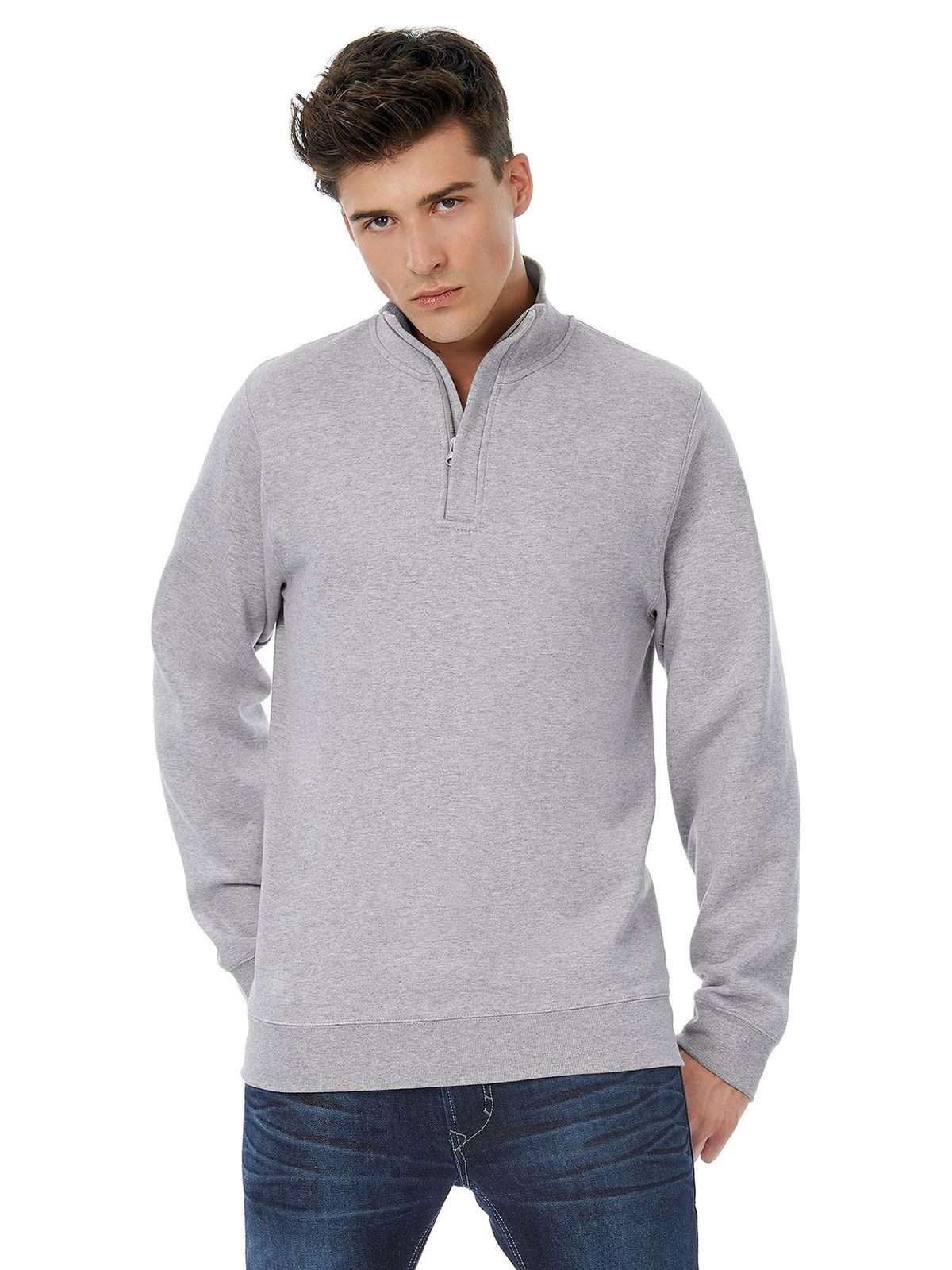 80% cotone, 20% poliestere. Felpa con maniche set-in, zip ¼ nascosta, tono su tono, polsini e colletto in elastane con costina 1x1, felpata internamente, struttura con busto tubolare.