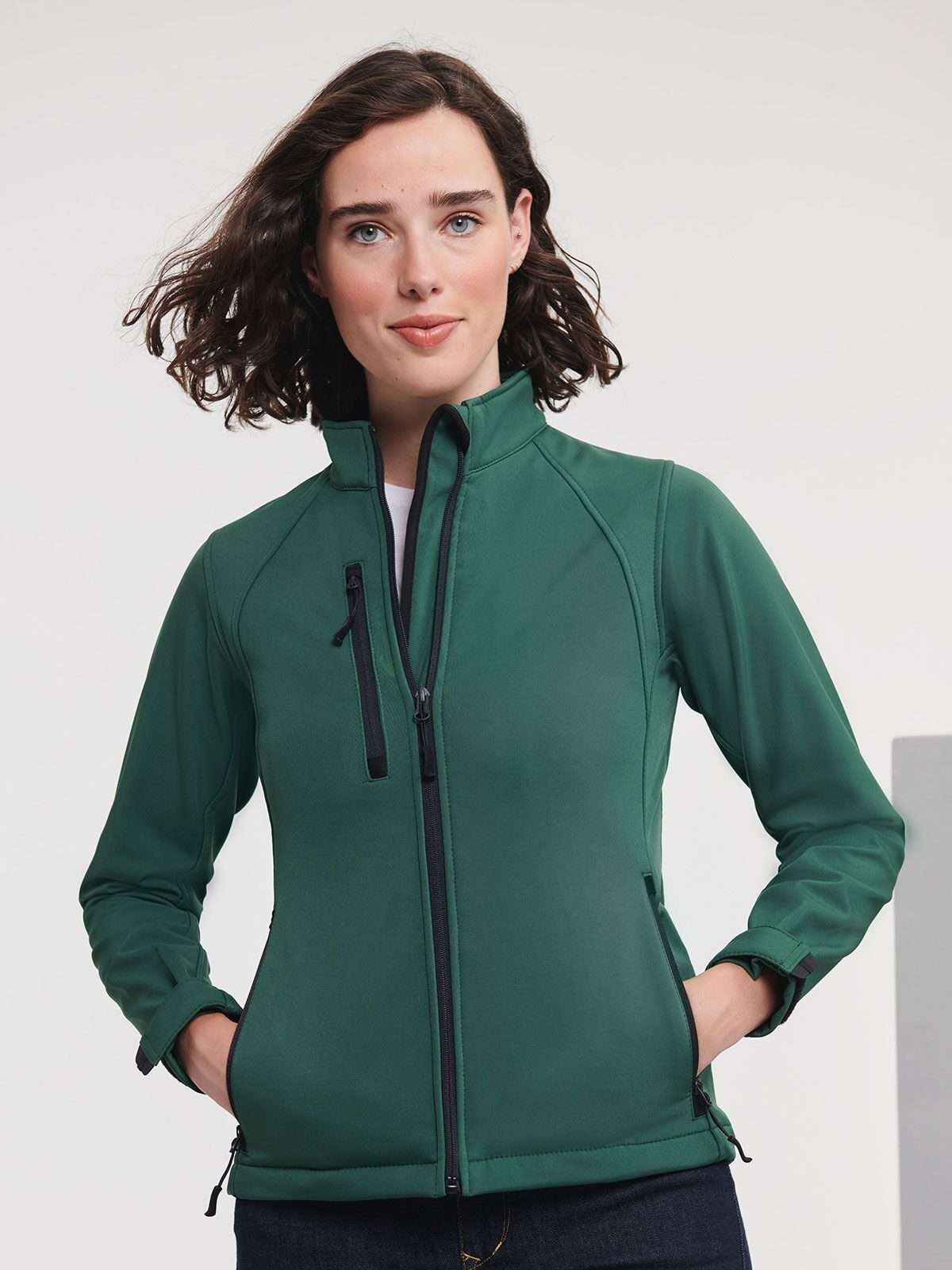 92% poliestere, 8% elastane. Giacca in softshell con tessuto a 3 strati, traspirante, resistente a vento e acqua. Tasche laterali e sul torace con rivestimento interno, orlo con coulisse. Polsini regolabili, lavabile a 40°C (non usare ammorbidente), leggermente più lunga nella parte posteriore.
