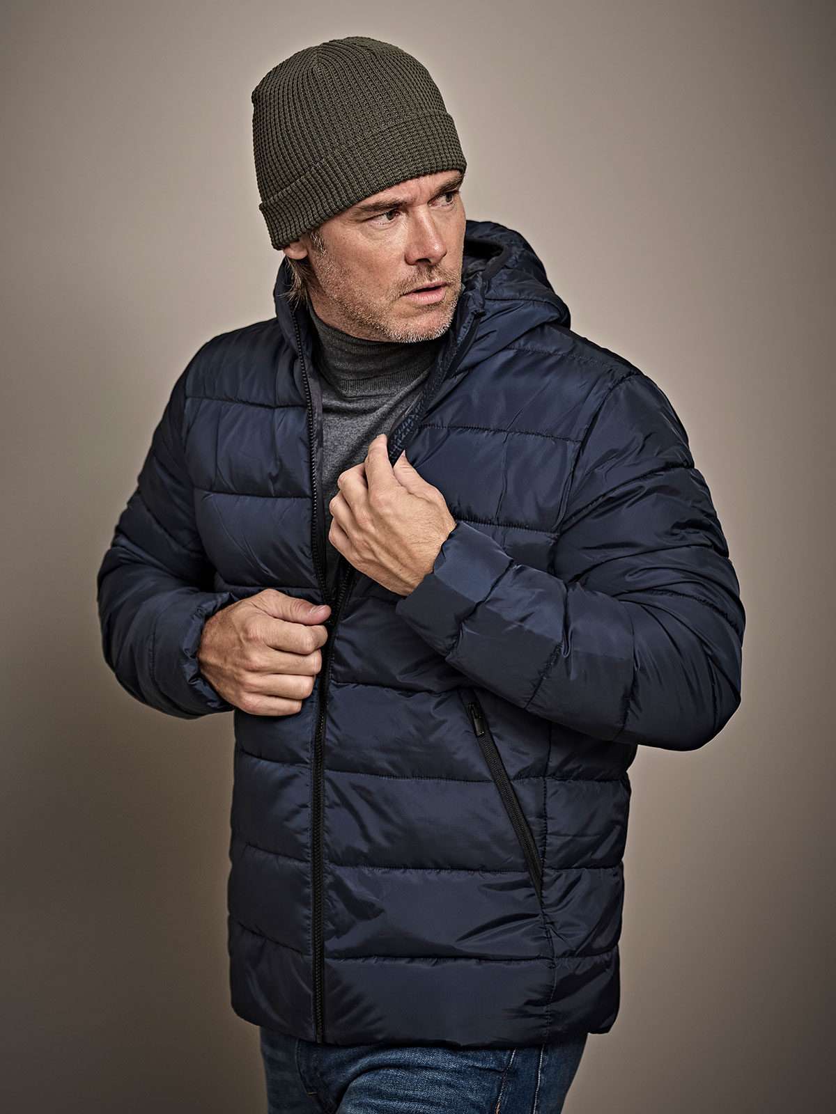 100% poliestere ripstop 360T con TPU. Leggera giacca con cappuccio in poliestere riciclato, con imbottitura Dupont extra premium. Resistente all'acqua. Taglio moderno, zip SBS, tasca interna, 2 ampie tasche frontali, polsini elastici nascosti. Cordino elastico in vita regolabile con stopper. Prodotto certificato GRS.