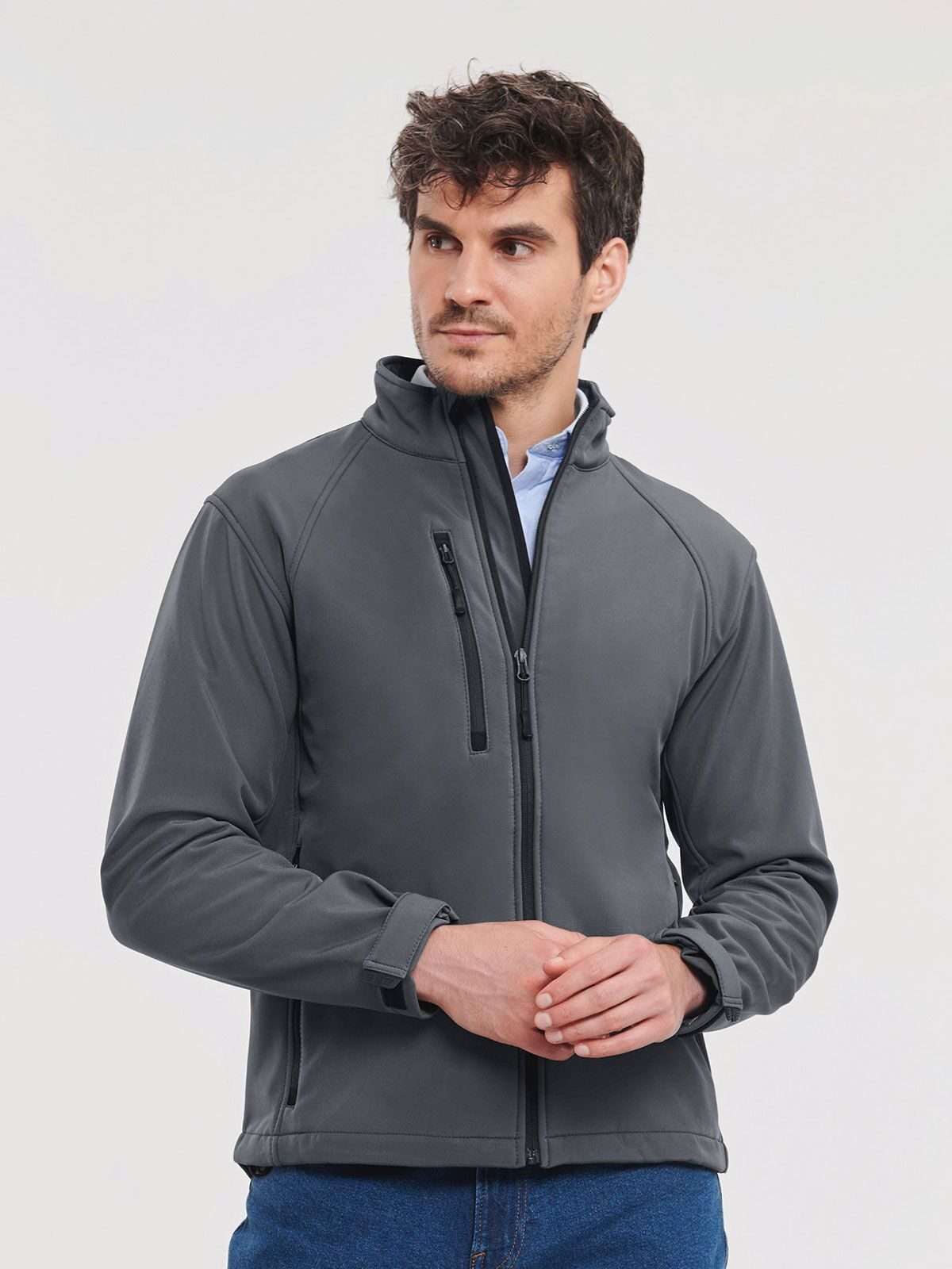 92% poliestere, 8% elastane. Giacca in softshell con tessuto a 3 strati, traspirante, resistente a vento e acqua, tasche laterali e sul torace con rivestimento, orlo con coulisse, polsini regolabili, lavabile a 40°C (non usare ammorbidente), leggermente più lunga nella parte posteriore.