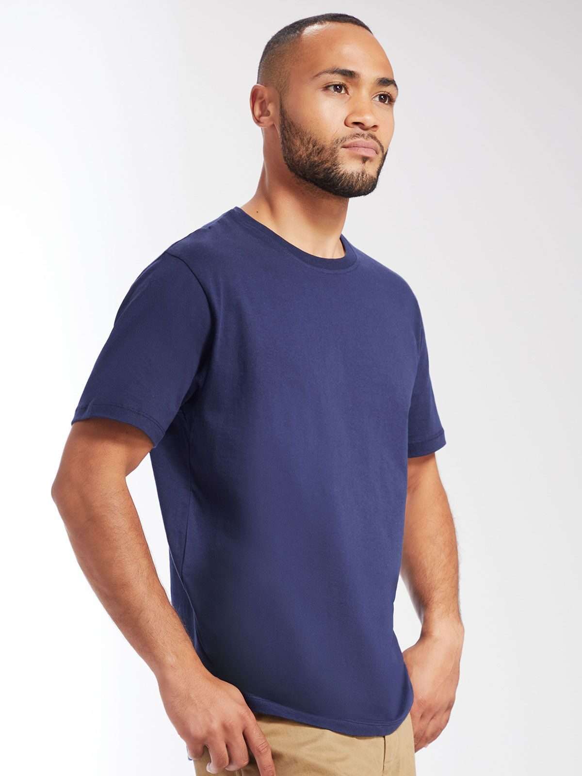 100% Cotone. T-shirt in Jersey girocollo, tinta in filo con stampa a righe. Cucitura a doppio ago.