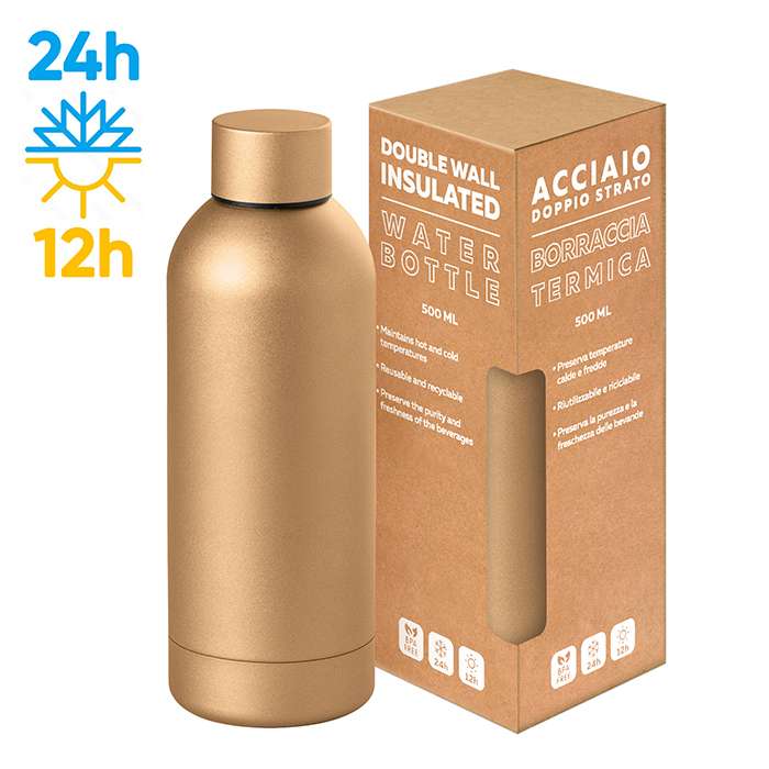 borraccia in acciaio inox 304/201; tappo in acciaio; doppio strato; capacit�� 500 ml; rifinitura matta metallica; box incluso