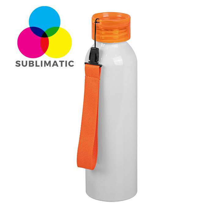 borraccia 650 ml; tappo di sicurezza avvitabile; rifinitura lucida; nastro personalizzabile; Tecnica di stampa consigliata: sublimatica