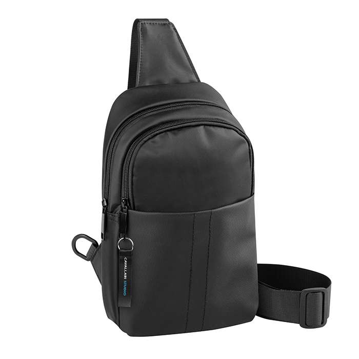 monospalla in 900D; materiale resistente all'acqua; 2 compartimenti; tasca anteriore con velcro; tasca posteriore con zip; tasche interne; tracolla regolabile