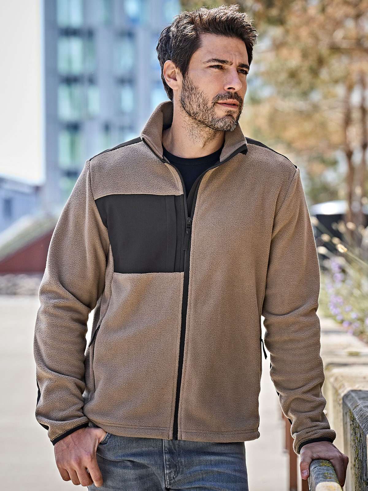 100% poliestere, ripstop: 92% poliestere, 8% elastan. Giacca in pile con zip,rinforzata su spalle e gomiti, con tasca sul petto,2 ampie tasche frontali e fasce elastiche sulle maniche.