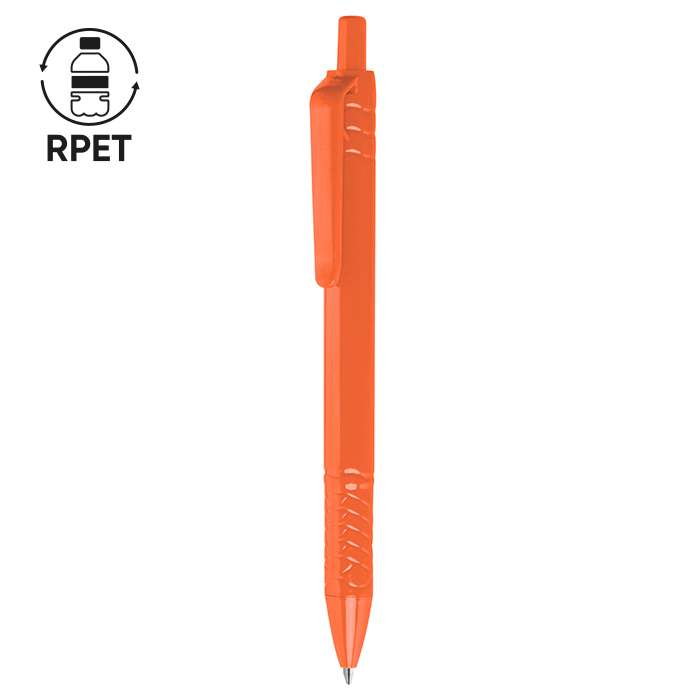 penna in RPET; penna a sfera, meccanismo a scatto; fusto colorato; refill nero; Tecnica di stampa consigliata: Serigrafica - Tampografica - UV