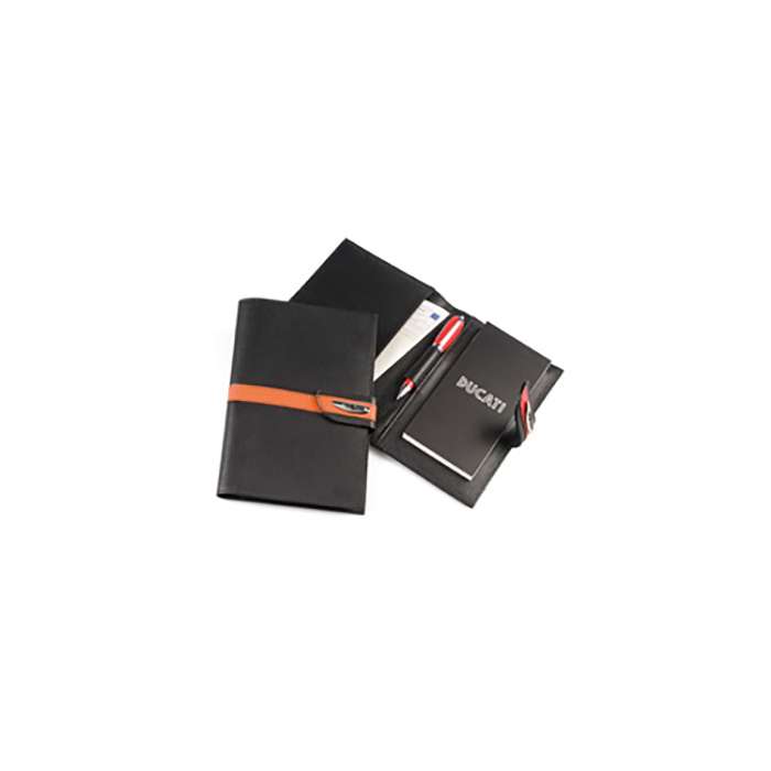 corredato di blocco notes; portapenna; chiusura con bottone; confezione in elegante astuccio regalo