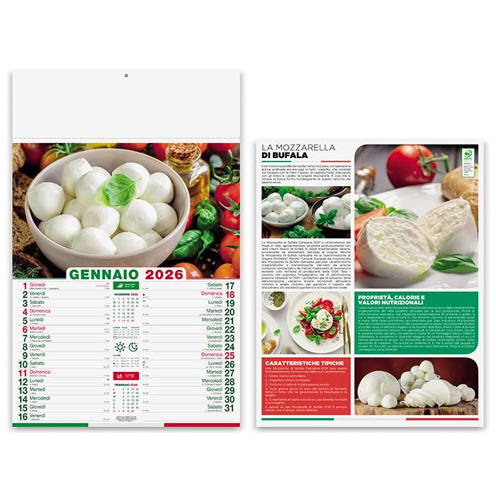 illustrato mensile 12 fogli; carta patinata 70gr; testata termosaldata; festivit�� internazionali; retro in quadricromia; tecnica di stampa consigliata: adesivo digitale - serigrafica