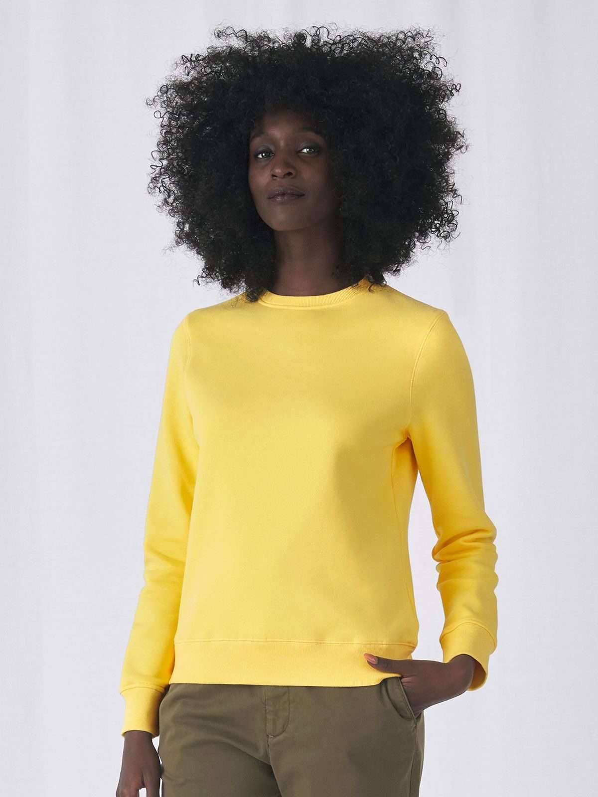 80% Cotone ring-spun pettinato, preristretto, 20% Poliestere. Felpa girocollo di alta qualità con maniche set-in, struttura con cuciture laterali, nastro parasudore resistente e di qualità, mezzaluna in single Jersey sulla schiena per un look premium e una maggiore durata nel tempo. Tessuto PST, felpata internamente, esterno 100% cotone pettinato.