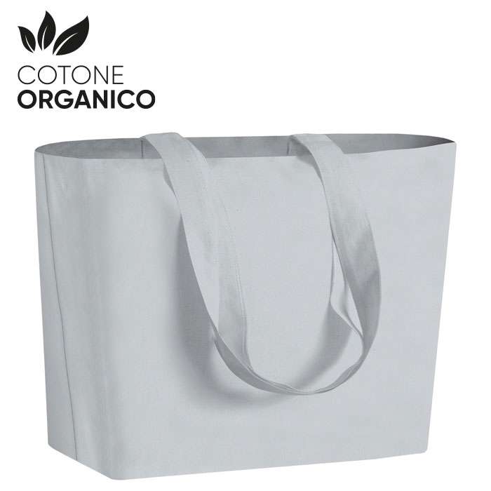 borsa in cotone biologico; soffietto; manici lunghi; 120 gr