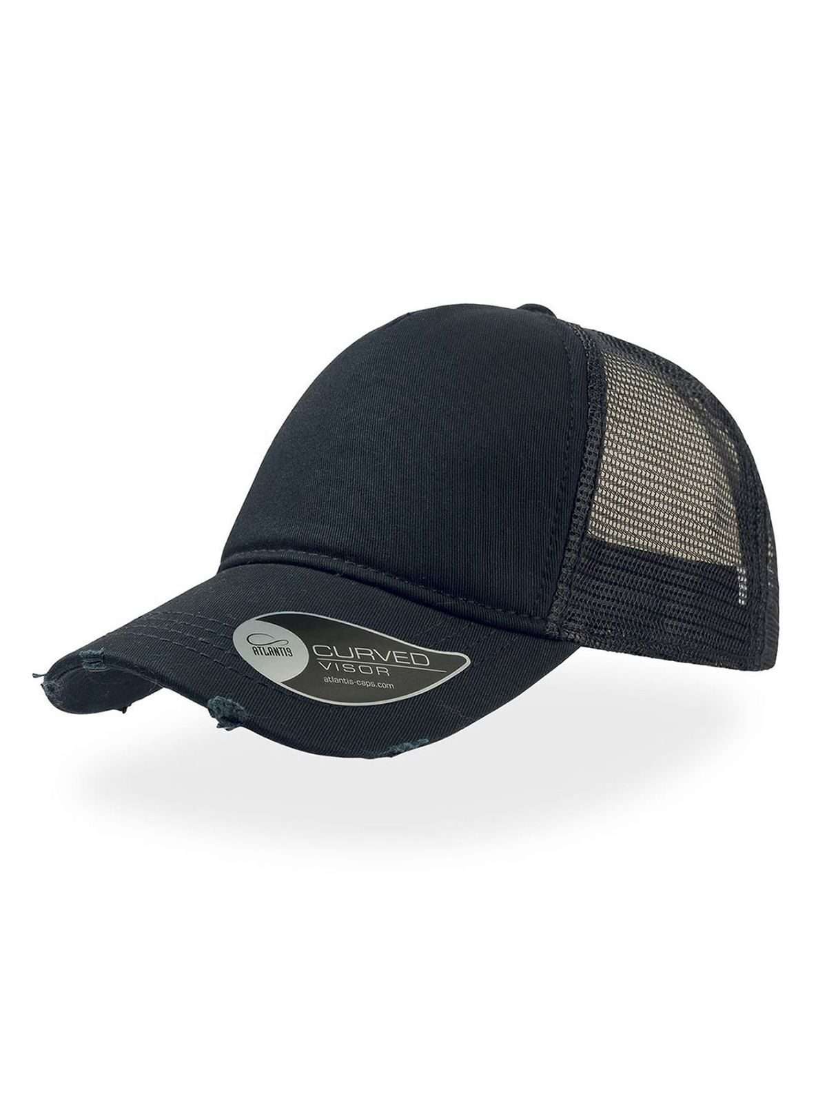 100% cotone. Trucker cap a 5 pannelli, mesh posteriore e laterale, visiera destroyed pre-curvata, pannello frontale non strutturato, ideale per la stampa, 4 cuciture su visiera, parasudore in cotone, etichetta removibile.