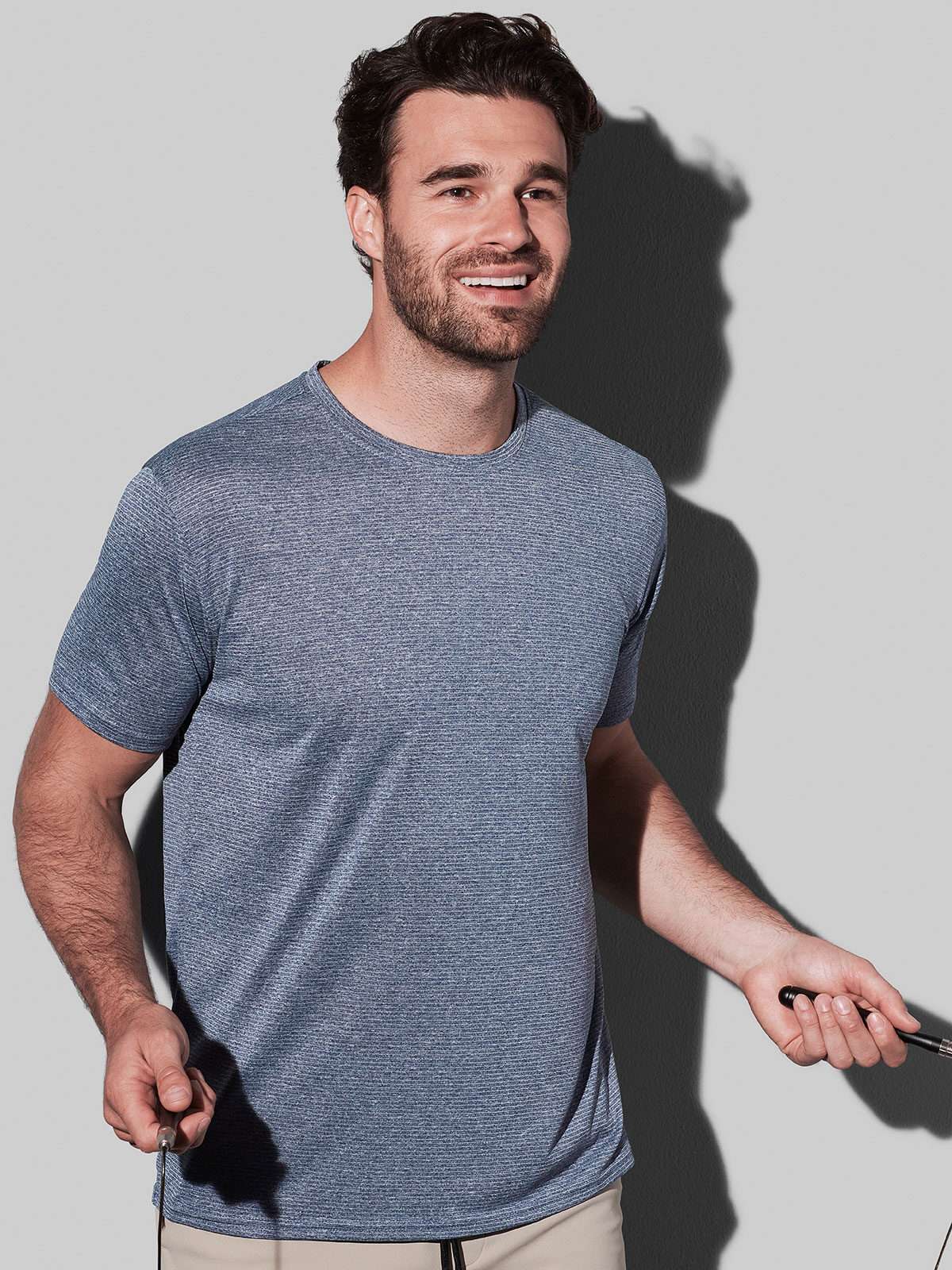 100% poliestere ACTIVE-DRY° (50% riciclato). T-shirt sportiva da uomo, look moderno, filato a colori misti in tessuto funzionale eco-compatibile, prodotto con 4 bottiglie di plastica riciclate per ciascuna t-shirt, effetto mélange, collo stretto dello stesso materiale, nastro di rinforzo, cuciture laterali, etichetta della taglia intessuta nel colletto, etichetta di manutenzione a strappo nella cucitura laterale, lavabile a 40°C.