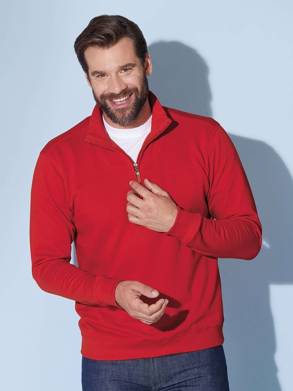 100% cotone. Felpa con colletto alla coreana e cerniera corta French-terry di alta qualità, sgarzata, Bordi elastici sul girocollo, sui polsini e sulla girovita, Cuciture flatlock, necktape, Tessuto esterno (300 g/m²). Manica lunga.