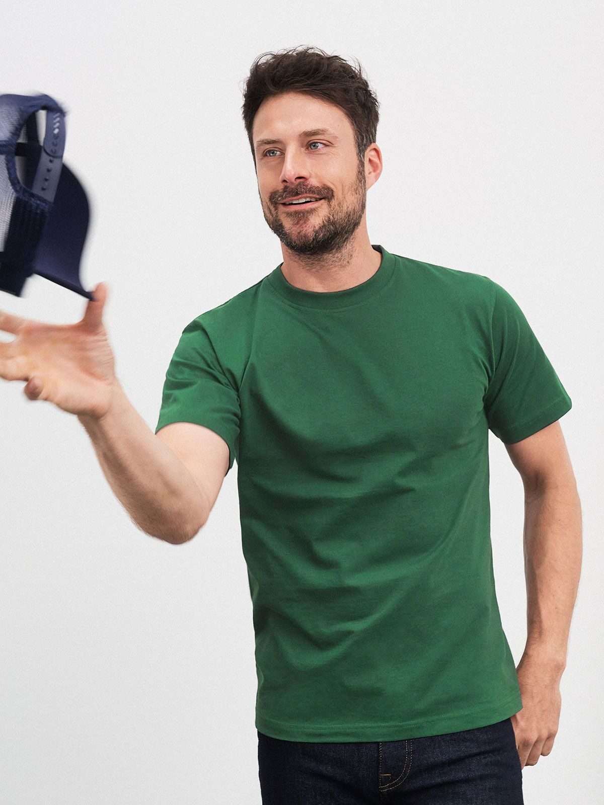 100% cotone. Comoda T-shirt in resistente single jersey, Collo rotondo con elastan, Senza cuciture laterali, necktape. Cuciture doppie sulle spalle, sul collo e sul giro manica.Tessuto esterno (180 g/m²). Manica corta senza cuciture laterali. taglie forti da 4XL