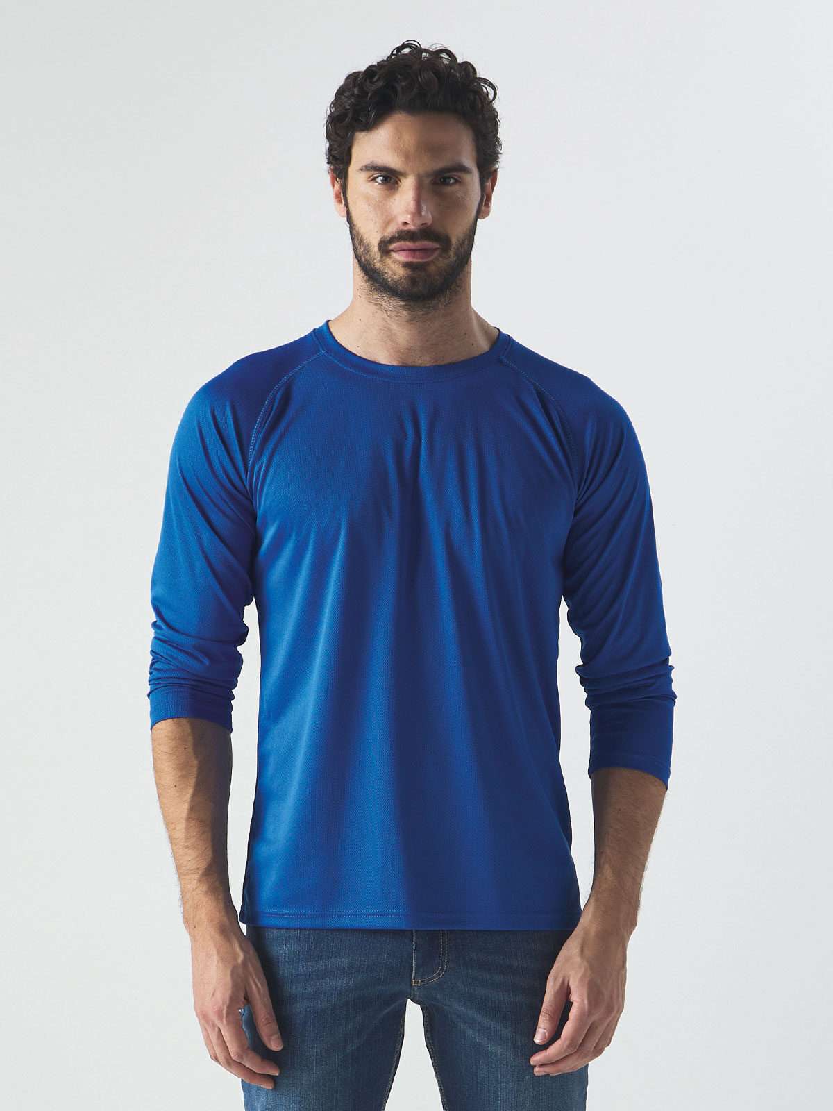 100% poliestere. T-shirt manica lunga raglan, tessuto traspirante, cuciture flatlock, struttura con cuciture laterali. Etichetta removibile.