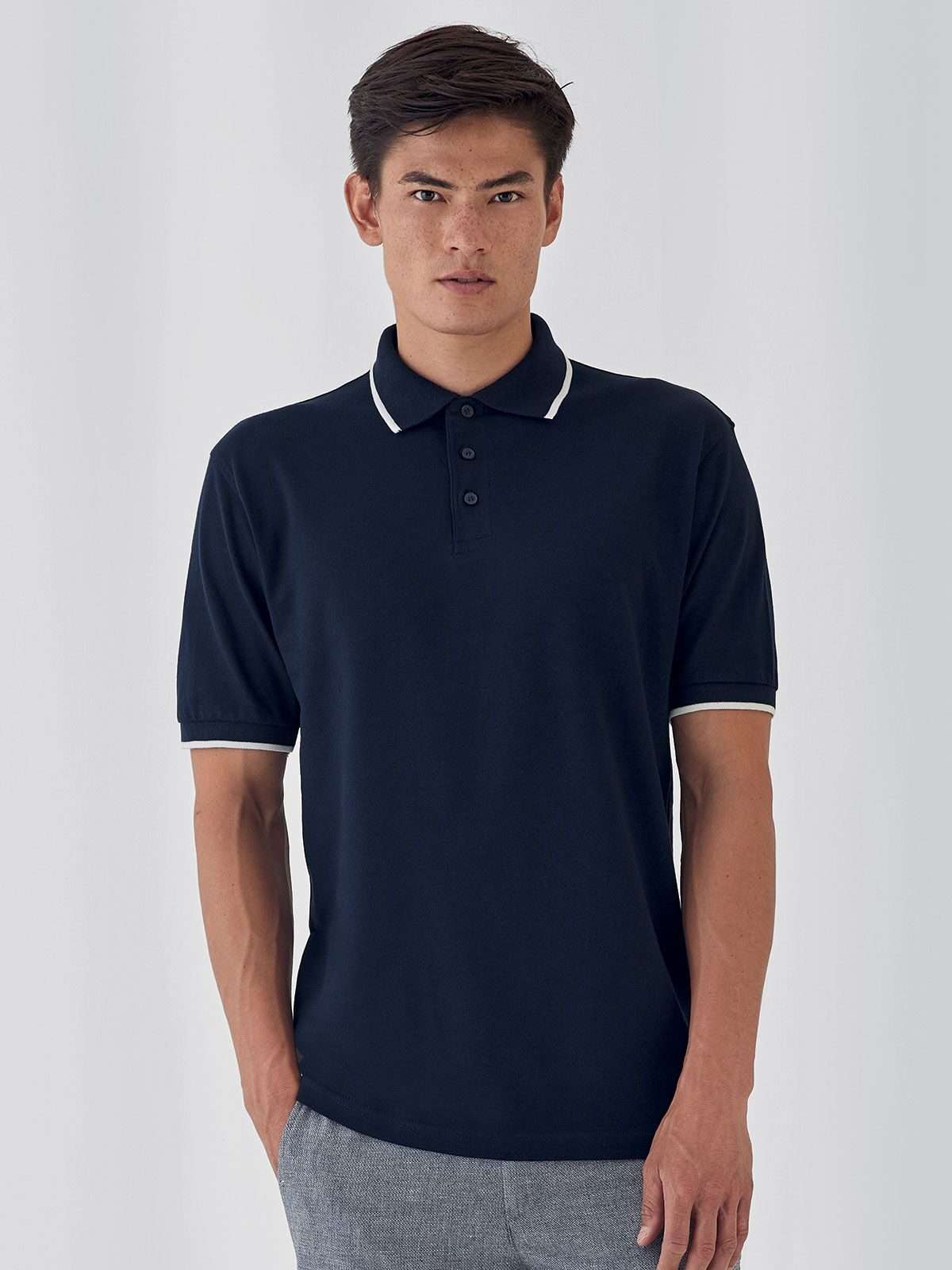 100% cotone ring-spun. Polo a maniche corte set-in, colletto e maniche con riga in contrasto, 3 bottoni tono su tono. Struttura con cuciture laterali.