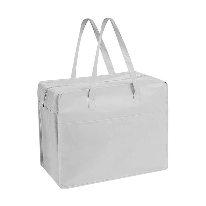 borsa shopping con soffietto; chiusura con zip; tasca frontale con velcro; manici corti; rifiniture cucite; tecnica di stampa consigliata: serigrafica