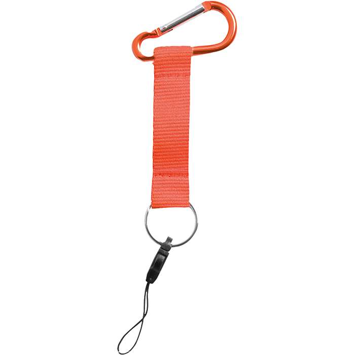 portachiavi; moschettone di metallo in tinta; gancio portacellulare; anello in metallo cromato; tecnica di stampa consigliata: serigrafica - sublimatica (BI-IT)
