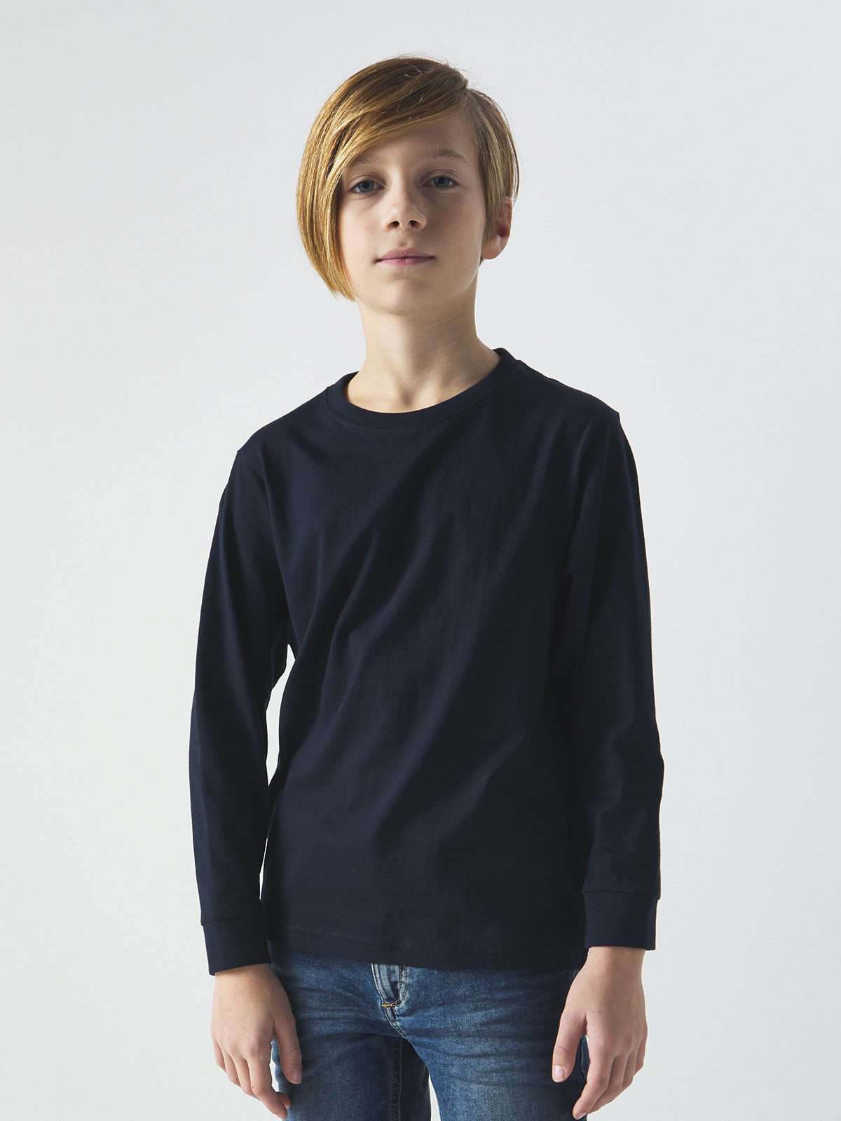 100% cotone single jersey. T-shirt a manica lunga con polsini, struttura con cuciture laterali costina 1x1 al collo e nei polsini in elastane, nastro di rinforzo da spalla a spalla. Etichetta strappabile.
