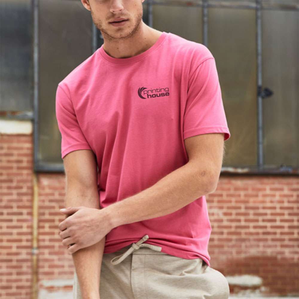 100% Cotone pettinato ringspun. T-shirt soffice al tatto, struttura con busto tubolare, vestibilità slim fit, girocollo in costina 1x1, etichetta strappabile. Col. 94: 97% cot. 3% pol. Col. HD, R6, RX, VF, VH, HP, H1: cot 52%. 48% pol. Col 9K: 90% col. 10% pol.ricic. (Col. 30: 145 g / m²).