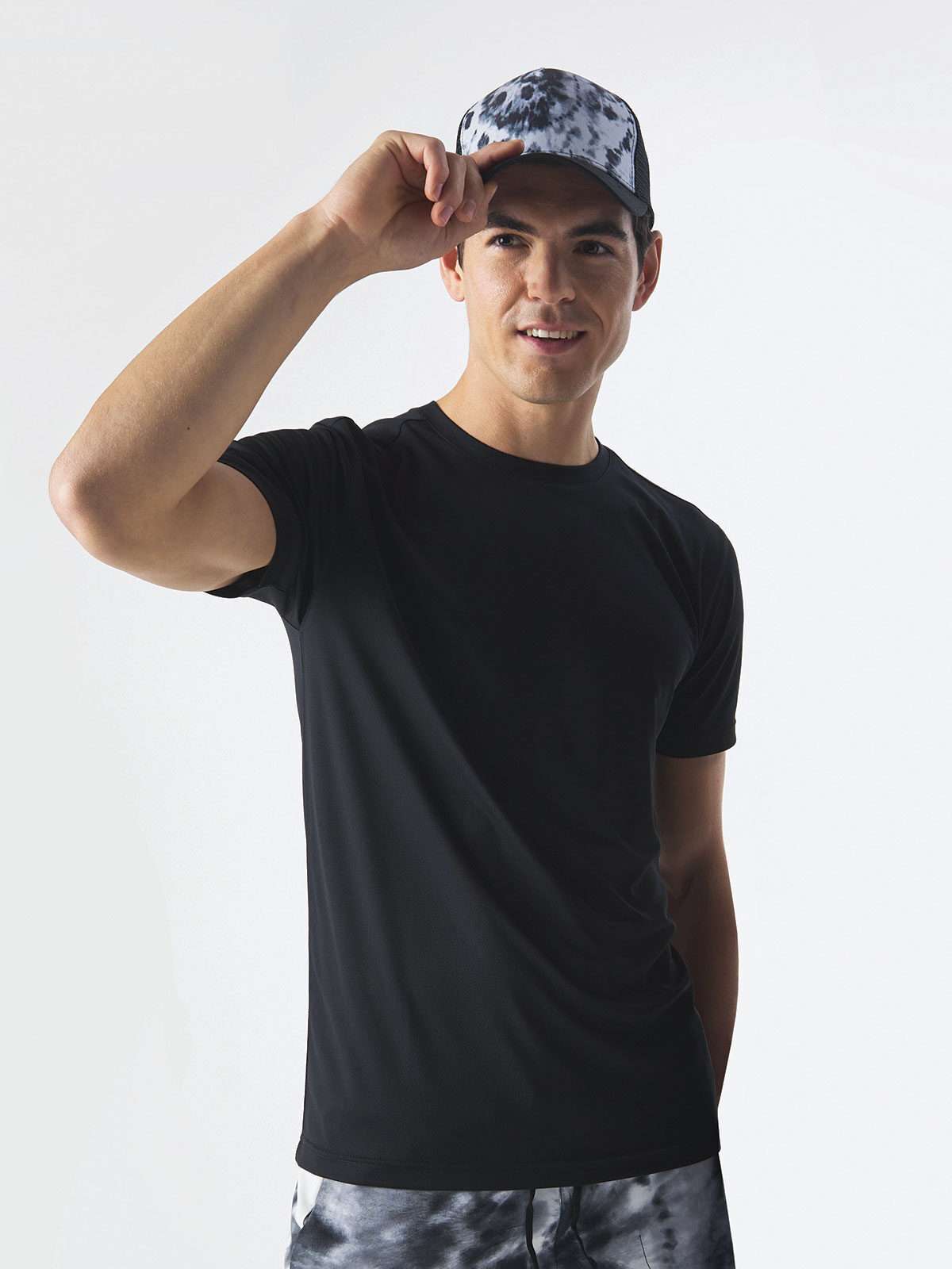 100% poliestere. T-shirt genderless maniche corte set-in, tessuto quick-dry traspirante e nastro parasudore al collo. Struttura con cuciture laterali. Etichetta removibile.