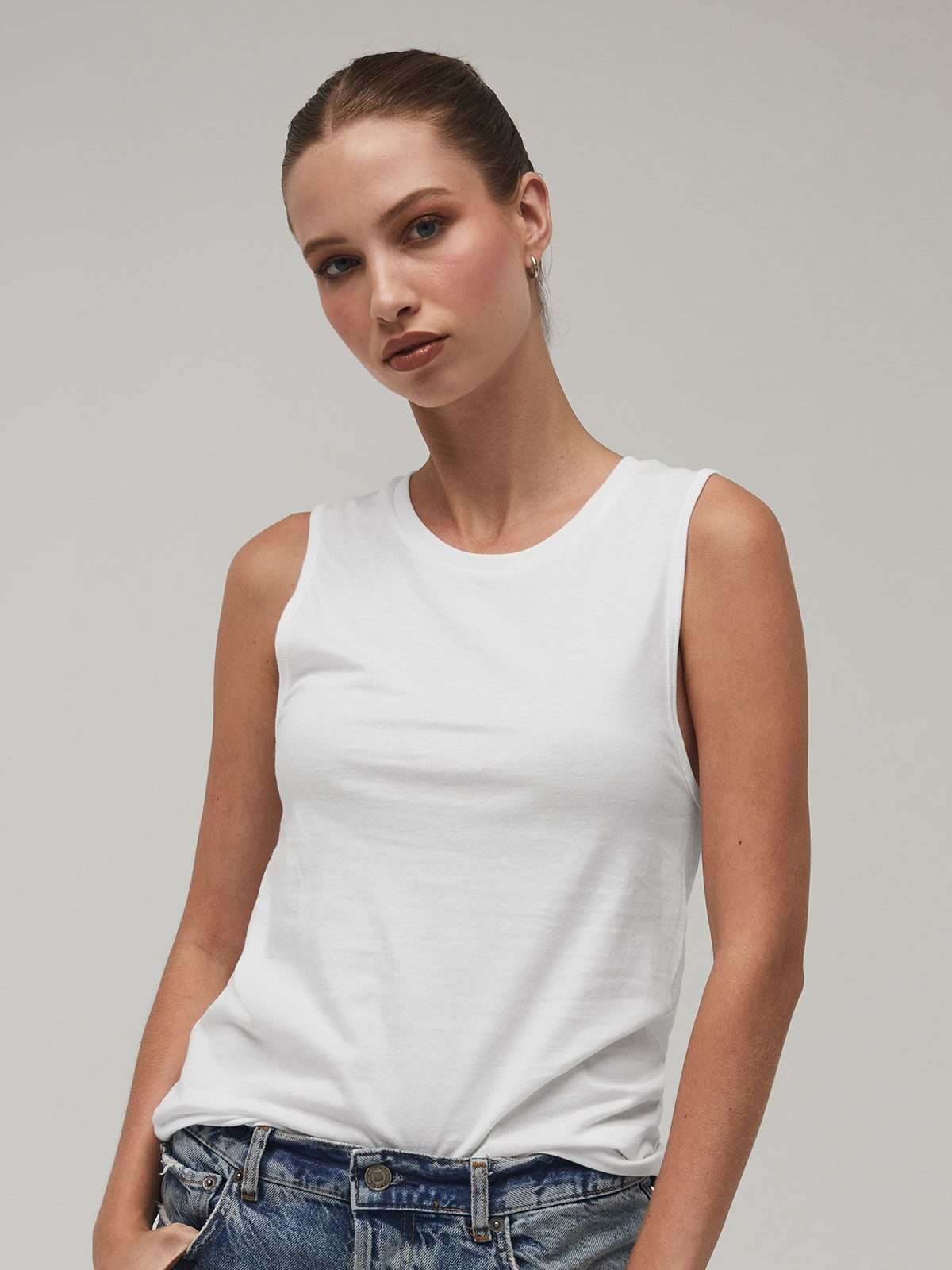 100% cotone airlume pettinato e ring-spun. Canotta da donna, vestibilita' morbida, cuciture laterali, etichetta removibile.