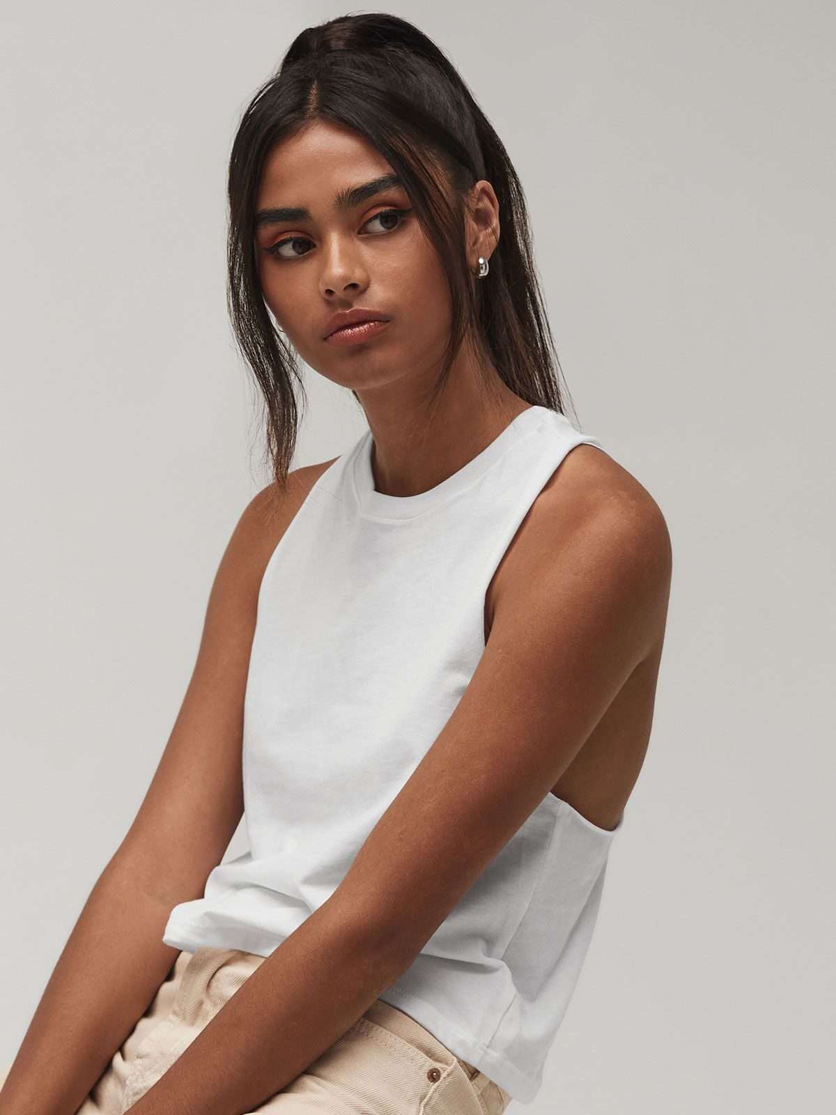 52% cotone ring-spun, 48% poliestere. Canotta girocollo, giromanica a taglio vivo, struttura con cuciture laterali. Etichetta removibile. Atl Heat: 90% cot 10% pol.